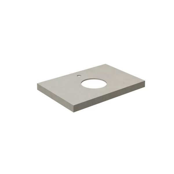 Столешница из керамического гранита «Про Чементо» с отверстием под смеситель. Предназначена для использования раковинами CANALETTO, а также с тумбами MODULA. Отверстия для раковины и смесителя располагаются в центре. Смеситель устанавливается в столешницу (используйте смесители с подходящим типом установки).