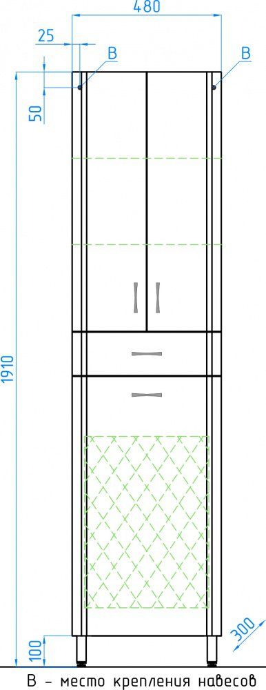 Колонна напольная бренда "Style Line" Эко Стандарт 48 с двумя ящиками. Фурнитура - хром, эксклюзивный декор "Луино" - ламинация внутренней стороны изделия. Направляющие полного выдвижения Hettich; сборка изделия с помощью эксцентриковых стяжек Hafele; все материалы полностью влагостойкие
