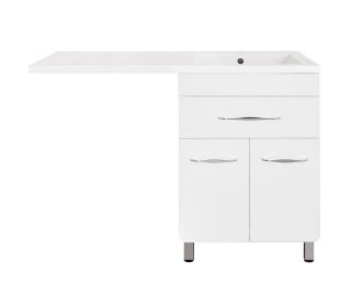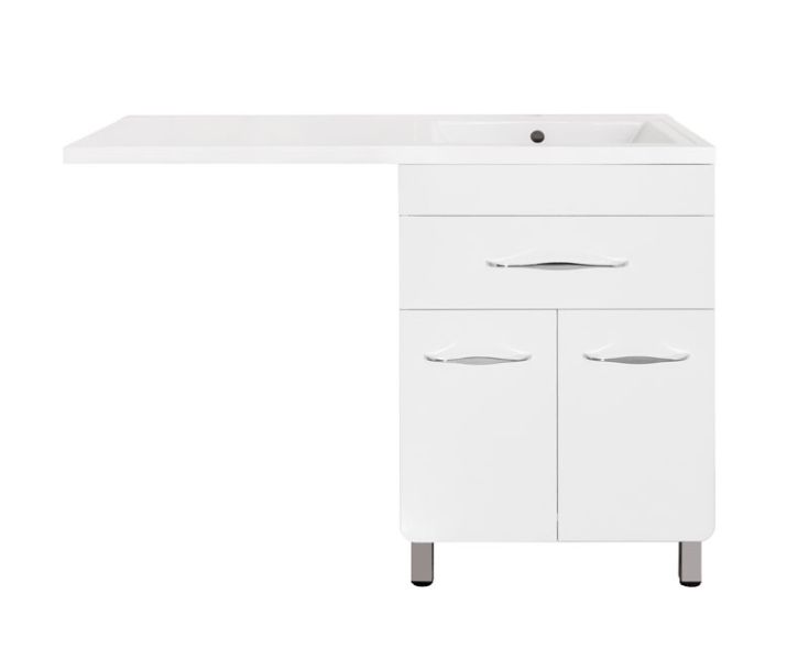 Тумба напольная бренда "Style Line" коллекции "Валеро" со стильными хромированными ручками. Направляющие полного выдвижения Hettich; сборка изделия с помощью эксцентриковых стяжек Hafele; все материалы полностью влагостойкие. Данная тумба предусматривает открытую подводку воды