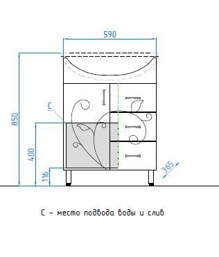 Тумба напольная бренда "Style Line" Эко Фьюжн 24 с 3 ящиками. Фурнитура - хром, тонкая элегантная декоративная фрезеровка фасадов. Направляющие полного выдвижения Hettich; эксклюзивный декор "Луино" - ламинация внутренней стороны изделия; сборка изделия с помощью эксцентриковых стяжек Hafele; все материалы полностью влагостойкие. Данная тумба предусматривает открытую подводку воды