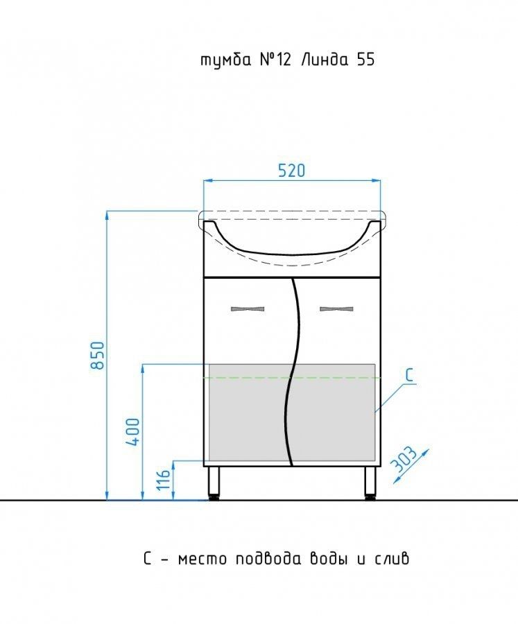 Тумба напольная бренда "Style Line" Эко Стандарт 12. Фурнитура - хром, эксклюзивный декор "Луино" - ламинация внутренней стороны изделия. Направляющие полного выдвижения Hettich; сборка изделия с помощью эксцентриковых стяжек Hafele; все материалы полностью влагостойкие. Данная тумба предусматривает открытую подводку воды