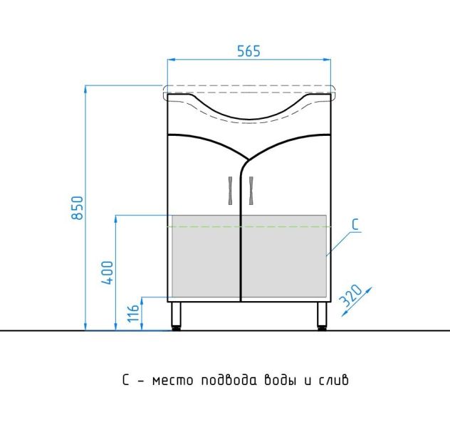 Тумба напольная бренда "Style Line" Эко Стандарт 15. Фурнитура - хром, эксклюзивный декор "Луино" - ламинация внутренней стороны изделия. Направляющие полного выдвижения Hettich; сборка изделия с помощью эксцентриковых стяжек Hafele; все материалы полностью влагостойкие. Данная тумба предусматривает открытую подводку воды