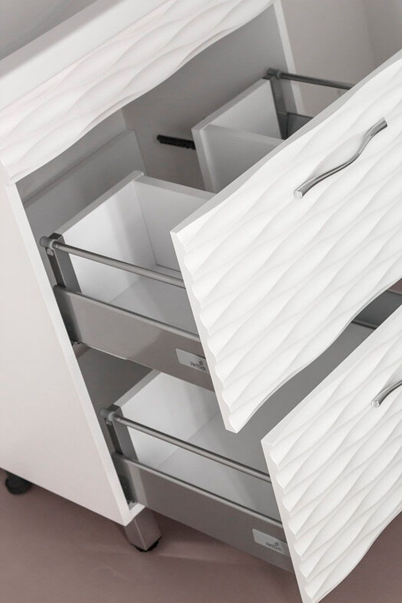 Тумба напольная бренда "Style Line" коллекции "Ассоль" с изысканной 3D фрезеровкой фасада, которая придает мебели неповторимый стиль. Перламутровые переливы цвета в данной коллекции станут отличным украшением в интерьере. Фурнитура - хром, петли на дверцах с механизмом плавного закрывания. Доводчики "Blum" обеспечивают плавность и бесшумность хода, высокую надежность и прочность. Данная тумба предусматривает открытую подводку воды. Боковины изделий в пленке в цвет фасадов