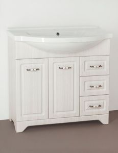 Тумба напольная бренда "Style Line" коллекции "Олеандр-2" классического дизайна, декорированная ручками с керамическими вставками "под бронзу" с изящным рисунком. Направляющие полного выдвижения Hettich; сборка изделия с помощью эксцентриковых стяжек Hafele; все материалы полностью влагостойкие. Данная тумба предусматривает открытую подводку воды