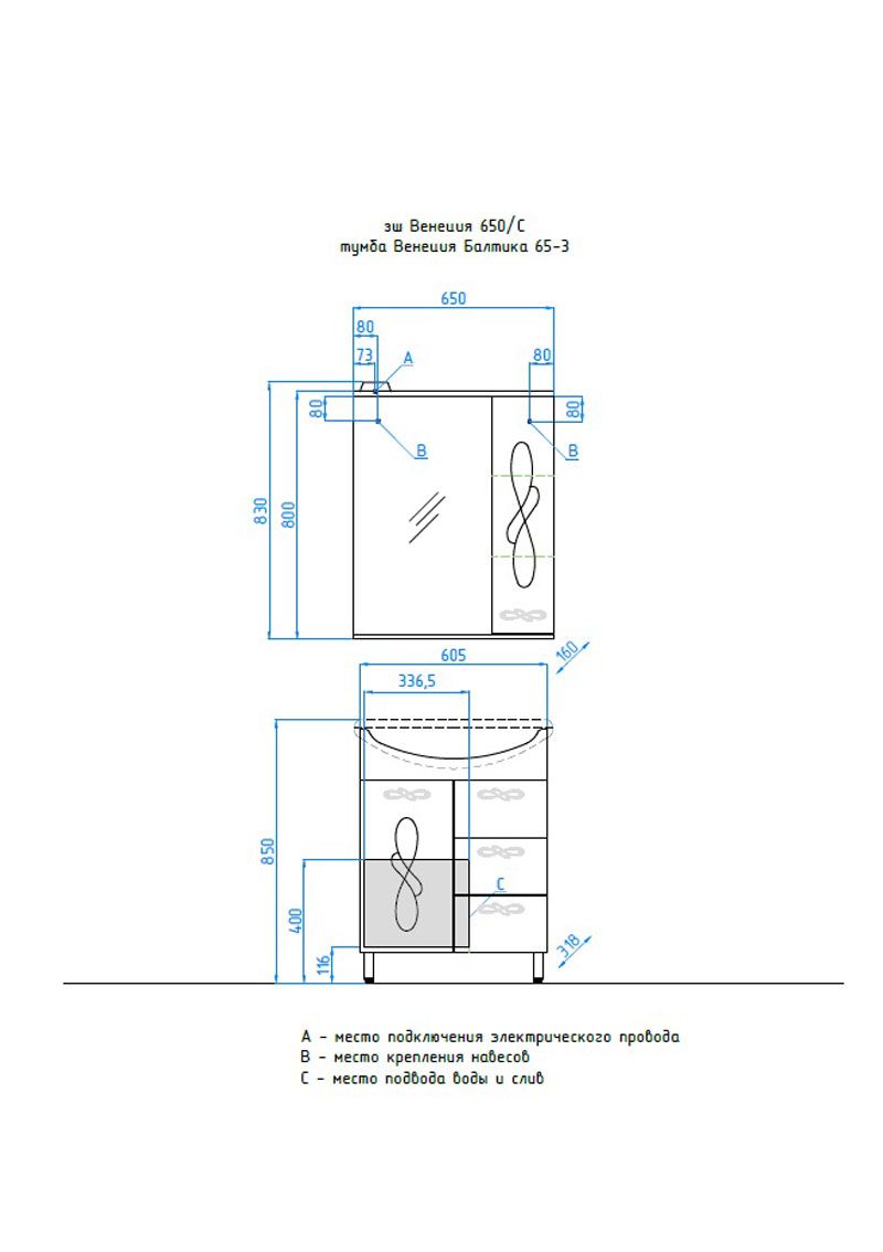 Тумба под раковину Style Line Венеция 65 ЛС-00000254