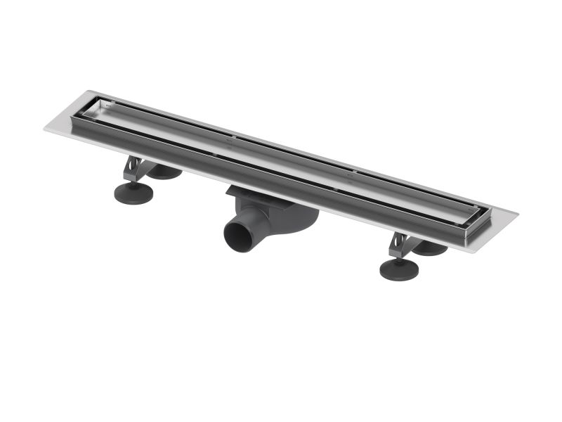 Комплект поставки: • дренажный канал из нержавеющей стали; • cифон DN 50, выход вбок, производительность (согласно DIN EN 1253) при уровне воды 10/20 мм над решеткой: 0,7/0,8 л/с; уровень гидрозатвора = 25 мм согласно DIN EN 1253; • гидроизоляционная манжета; • погружной стакан с мембраной; • 4 опоры, высота до 125 мм (до уровня чистового пола); • двухсторонняя вставка 2 в 1: основа для плитки “tile” и панель “steel” Внимание! Минимальная высота монтажа 95 мм (от чернового пола до уровня чистового покрытия)