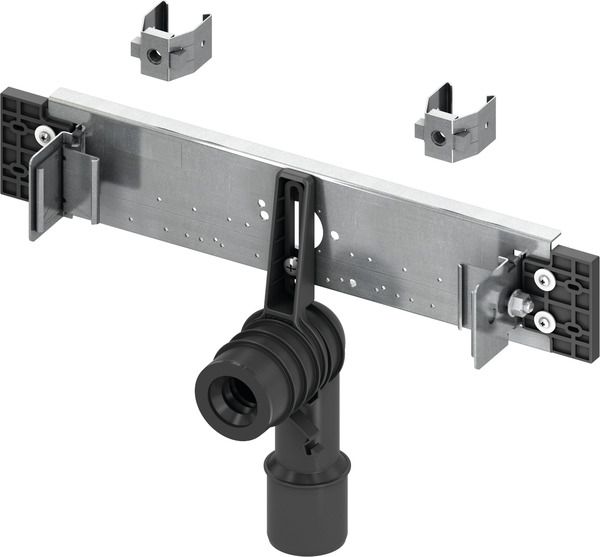 Монтажная пластина из оцинкованной стали со звукоизоляцией для установки уголков с настенным креплением с узлом в сборе: соединительное колено DN 40/50, резиновая муфта, номинальный диаметр 30/50, защитная заглушка, крепежные элементы для крепления профилей TECEprofil, установочные элементы 2 х М10 и крепежные элементы для раковины. Дополнительно приобретается: • Уголок с настенным креплением TECEflex 16 x 1/2", TECE 1/2" x 1/2", TECElogo 16 x 1/2" или TECElogo 20 x 1/2"