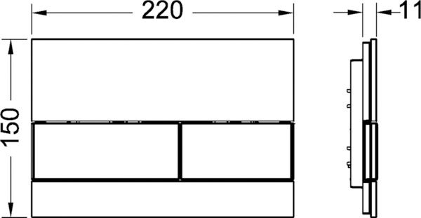 Панель смыва для смывных бачков TECE, фронтальная или верхняя установка. Плоская стеклянная панель смыва с двумя установленными на пружинах клавишами привода кулисного типа. Подходит для монтажа на уровне стены вместе с монтажной рамкой унитаза для монтажа на уровне стены (например, арт. 9240649). Совместима с контейнером для гигиенических таблеток. Размеры (Ш х В х Г): 220 x 150 x 11 мм Монтажная рамка для установки панели смыва на уровне стены в комплектацию не входит; приобретается дополнительно!