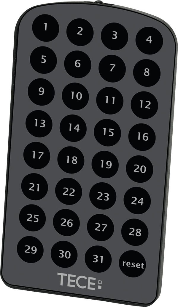 Пульт дистанционного управления для программирования электронныхпанелей смыва TECElux mini. Программируемые функции: зонаобнаружения датчика, гигиенический смыв, время активации,предварительный смыв и яркость подсветки дисплея.