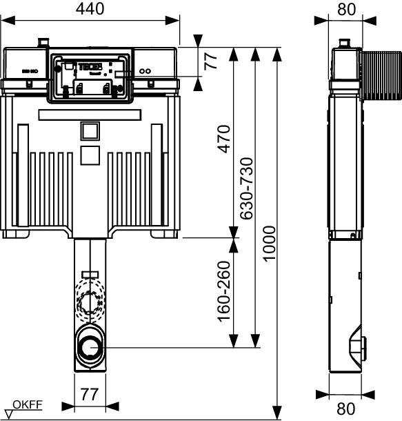 TECE TECEprofil Застенный бачок TECEbox Octa 2, с арматурной сеткой, для напольного унитаза 9370500