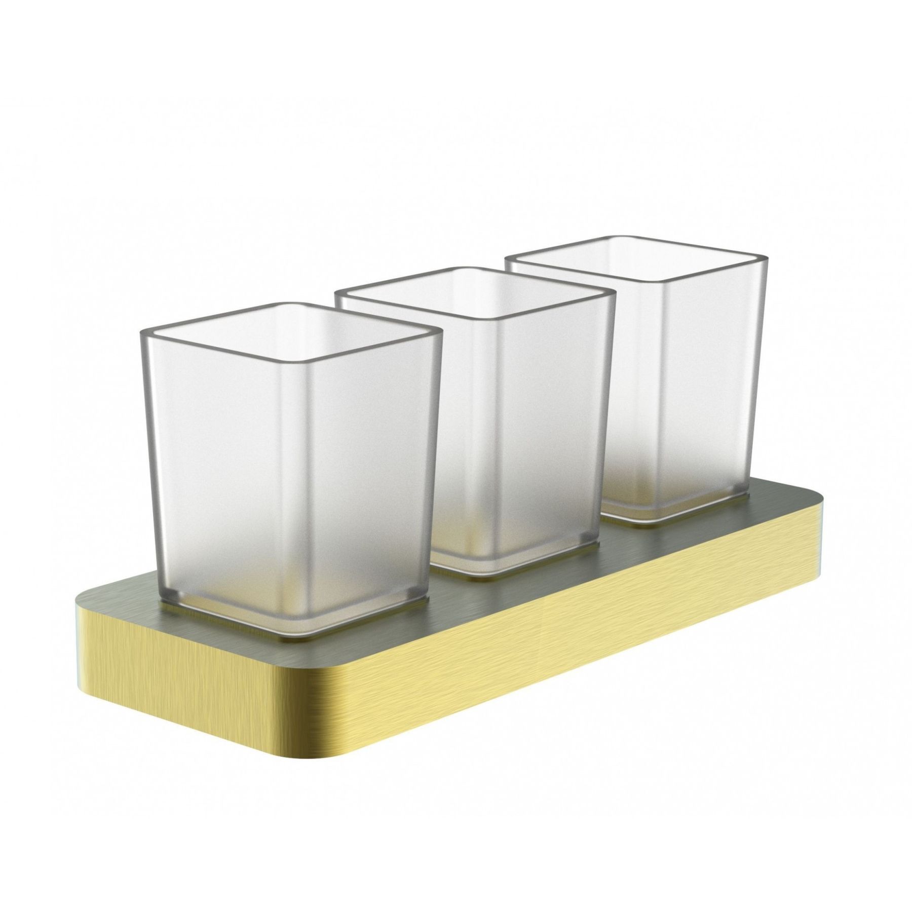 Три стакана для зубных щеток с держателем WONZON & WOGHAND LOTTE, Брашированное золото (WW-8338-BG)