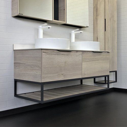 Тумба COMFORTY Порто-120-2 00-00008910, дуб дымчатый с белой столешницей с раковинами Comforty 9110 купить