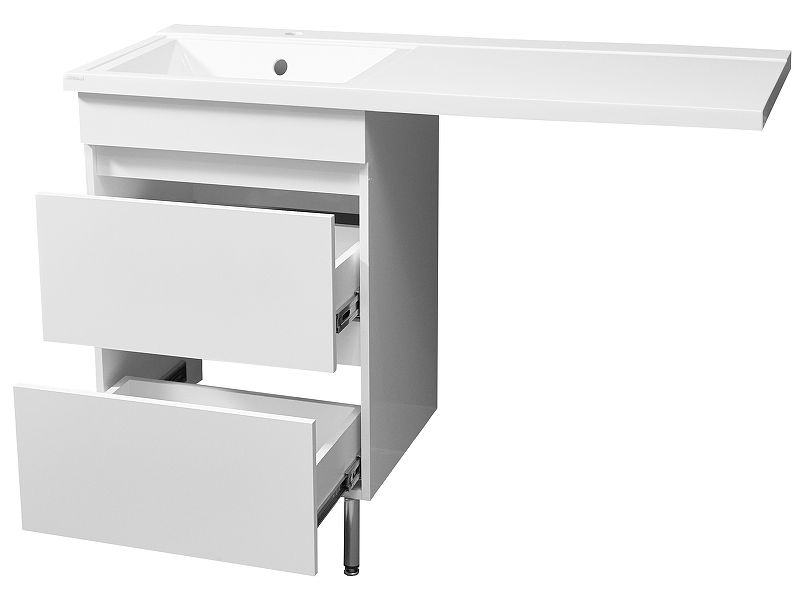 Тумба под стиральную машинку 100 см Stella Polar Мадлен (39 х 85 х 48 см) напольная отличное решение для любителей практичности. Наличие двух выдвижных ящика позволит хранить всё необходимое "под рукой", а встроенный механизм доводчика обеспечит более комфортную эксплуатацию. Сочетание современного стиля и минималистичного дизайна позволит тумбу гармонично вписаться практически в любой интерьер современной ванной комнаты. В комплекте с тумбой есть Раковина Stella Polar Мадлен 100 на стиральную машину литьевой мрамор с размерами ширина 100,2 см, глубина 48,4 см, высота 14 см. Задняя часть тумбы имеет свободный доступ для подключения коммуникаций.