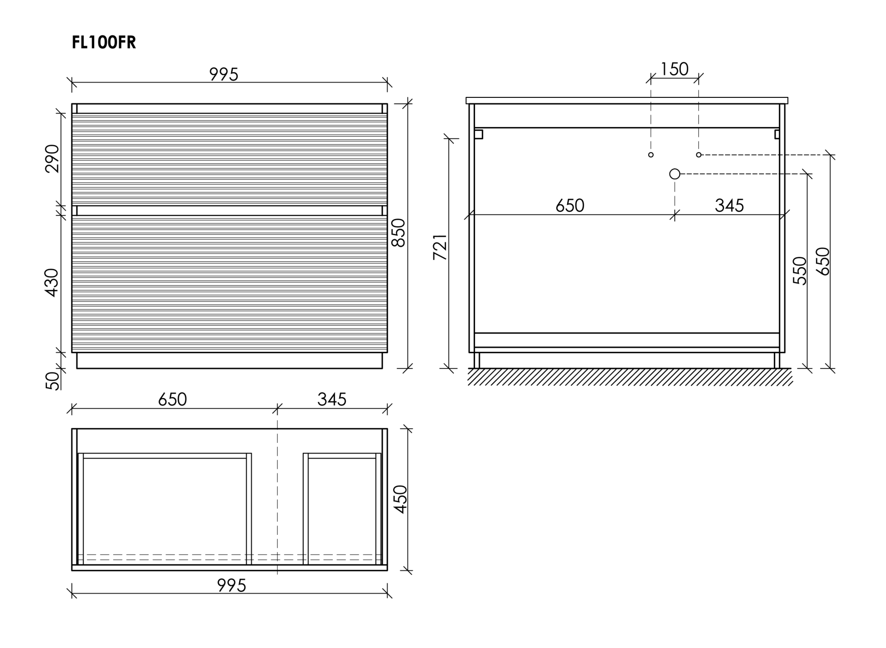 • Тумба напольная с двумя выдвижными ящиками с доводчиками скрытого монтажа