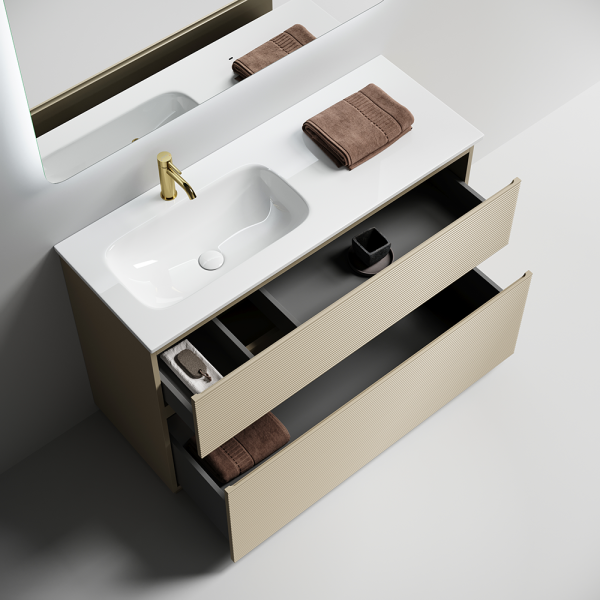 • Тумба напольная с двумя выдвижными ящиками с доводчиками скрытого монтажа
