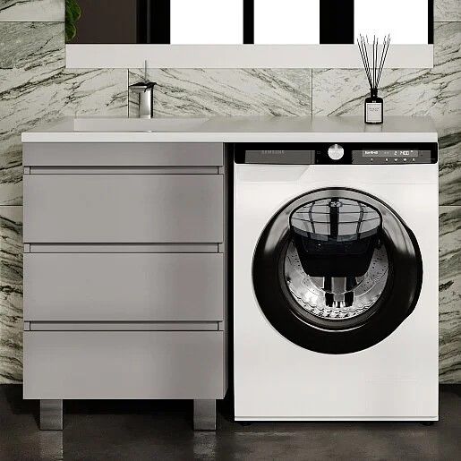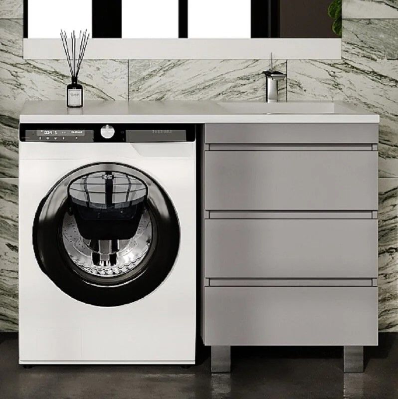 Тумба напольная Style Line Даллас Леон 120 Люкс Plus СС-00002449 под раковину для стиральной машины три ящика серый купить