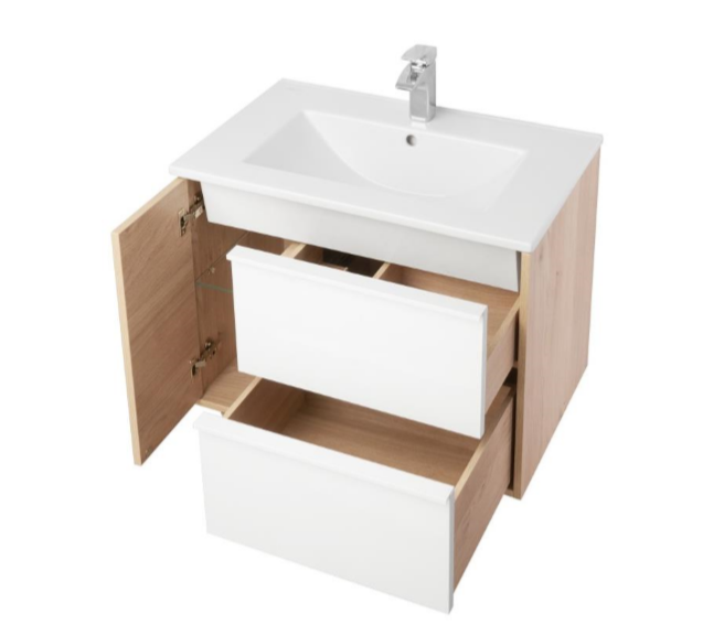 Тумба под раковину Акватон Бостон 75см белый/дуб эврика 1A252601BN010