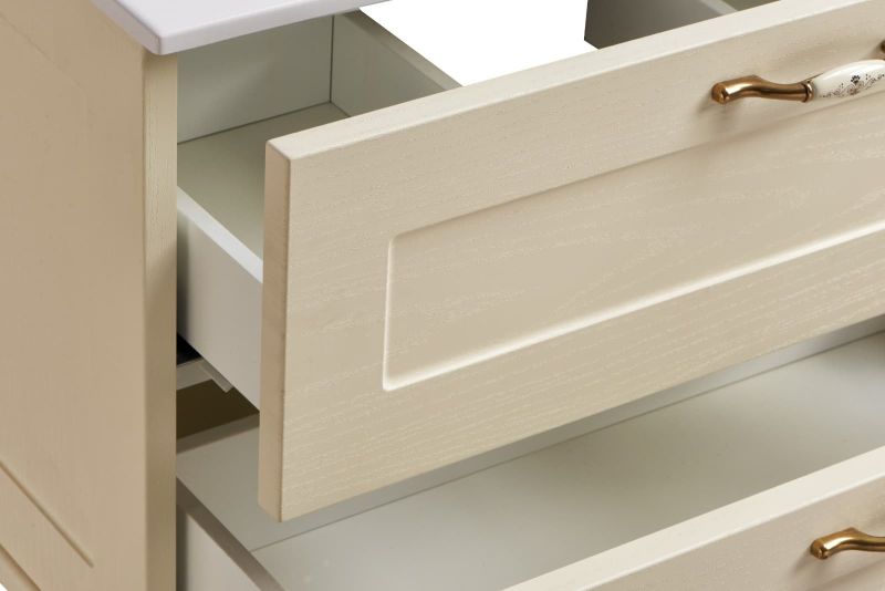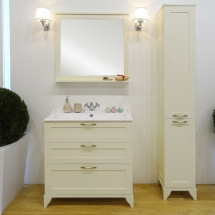 Тумба для комплекта Акватон Леон 80 Н дуб бежевый бесподобно подойдет как для просторной ванной комнаты, так и для небольшого помещения.В производстве используют только качественные влагостойкие материалы (МДФ), в составе которых полностью отсутствуют опасные вещества. Коллекция Леон выполнена в эксклюзивном дизайнерском решении в лучших традициях стиля ретро. Светлое дерево, основной цвет исполнения Акватон Леон, гармонирующий с большинством интерьерных решений. Тумба под раковину предусматривает удобную и вместительную систему хранения, состоящую из ящиков. Качественные доводчики позволяют обеспечить мягкое и тихое закрывание. Важные габариты изделия: ширина 80 см, глубина 44.7 см, высота 83.4 см.Россия родина бренда Акватон, вся продукция производится со строгим соблюдением всех стандартов, благодаря чему можно быть абсолютно уверенным в надежности и высоком качестве. Тумба для комплекта Акватон Леон 80 Н дуб бежевый создаст уют и комфорт в любом дизайнерском решении, и ванная комната обретет неповторимый элемент интерьера.