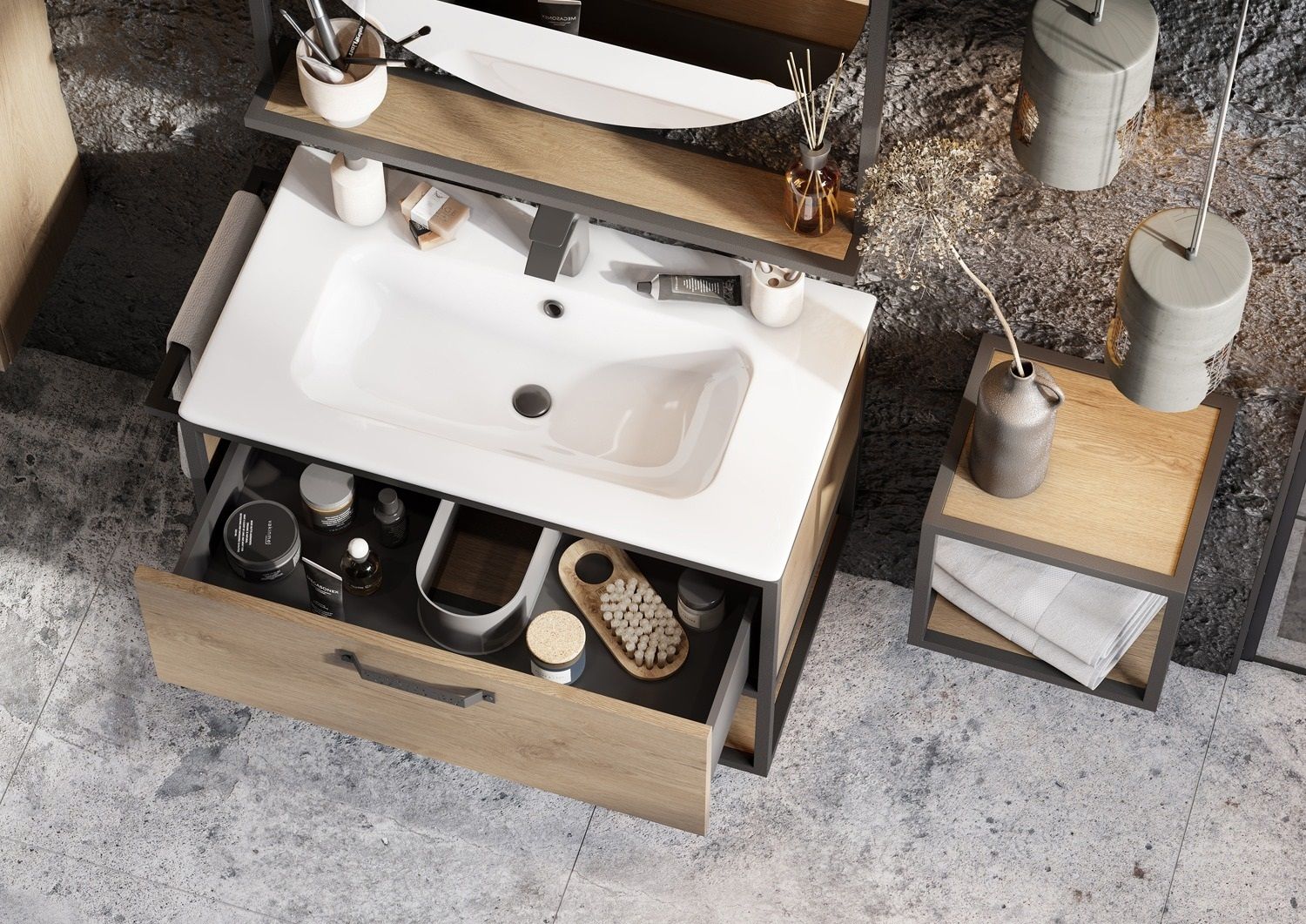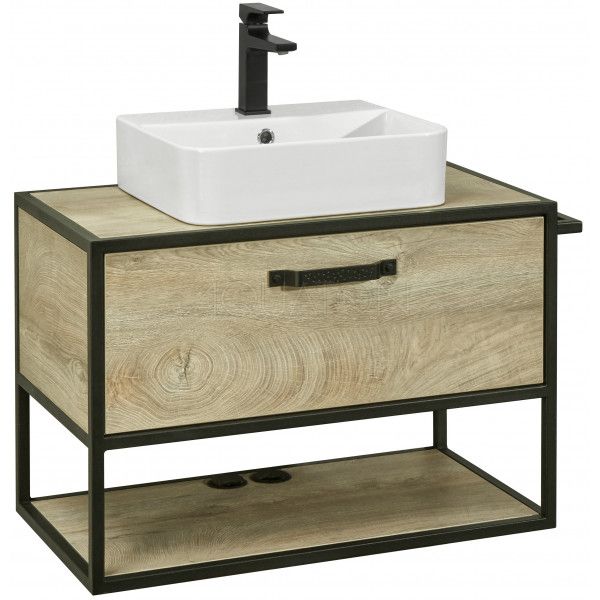 • Тумба Лофт Фабрик 65 в цвете дуб эндгрейн – это сочетание натурального древесного декора и благородства металла