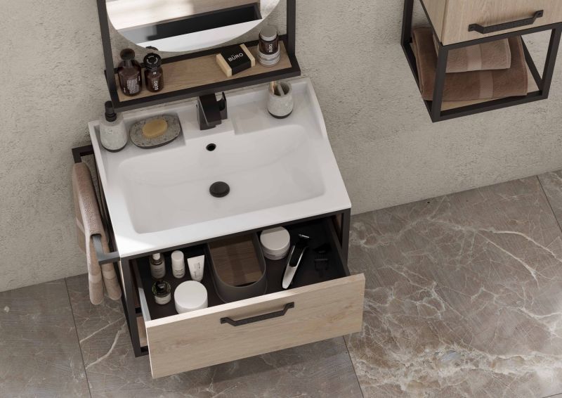 • Удобный вместительный ящик, снабженный направляющими плавного выдвижения и открытая нижняя полка позволят разместить все необходимое