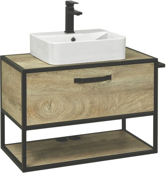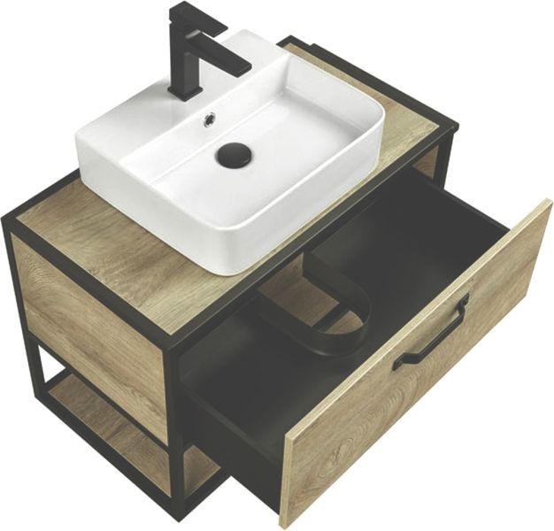 • Тумба Лофт Фабрик 80 в цвете дуб эндгрейн – это сочетание натурального древесного декора и благородства металла