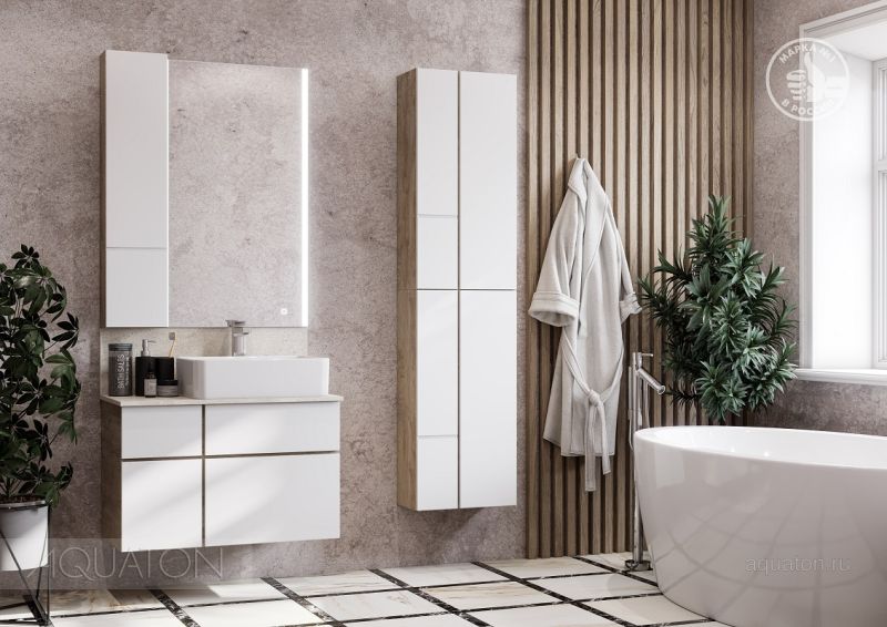 Тумба для комплекта Акватон Мишель 100 дуб эндгрейн не только замечательное украшение для ванной комнаты, но и превосходное функциональное решение любого санузла. Подвесной способ установки дает возможность не только визуально увеличить пространство, но и обеспечивает быстрый и удобный доступ для уборки.Компания Акватон использует при производстве высококачественные водоотталкивающие материалы (ДСП), соответствующие всем необходимым требованиям безопасности. Серия Мишель отличается превосходным дизайном с соблюдением всех значительных элементов современного стиля. Основным цветом, в котором выполнена тумба под раковину Акватон Мишель является белый, безупречно впишется в любой дизайн проект. Тумба под раковину предусматривает удобную и вместительную систему хранения, состоящую из дверей, ящиков с системой нажимного открывания. Качественные доводчики позволяют обеспечить мягкое и тихое закрывание. Ключевые габариты изделия: ширина 100 см, глубина 46 см, высота 52 см.Страной бренда Акватон является Россия, все товары производятся с выполнением соответствующих стандартов качества, что позволяет быть полностью уверенными в долговечности и надежности. Тумба для комплекта Акватон Мишель 100 дуб эндгрейн это абсолютный комфорт в современной ванной комнате.