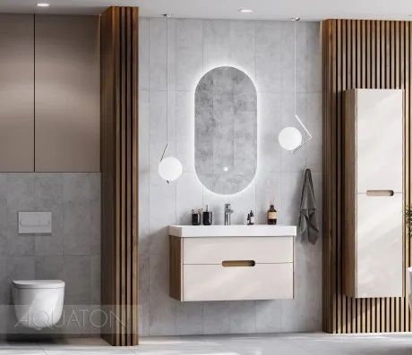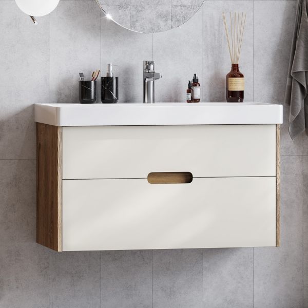Тумба под раковину Акватон Оливия 90см бежевый/дуб веллингтон 1A254401OLVG0