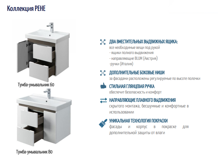 Тумба под раковину Акватон Рене 60 белый восхитительно впишется в дизайн любой ванной комнаты, будь то компактная ванная в многоэтажном доме или большой санузел в загородном коттедже. Подвесной способ установки дает возможность не только визуально увеличить пространство, но и обеспечивает быстрый и удобный доступ для уборки.Компания Акватон использует при производстве высококачественные водоотталкивающие материалы (МДФ), соответствующие всем необходимым требованиям безопасности. Серия Рене отличается превосходным дизайном с соблюдением всех ключевых элементов современного стиля. Основным цветом, в котором выполнена тумба с раковиной Акватон Рене является белый, отлично подходящий большинству дизайнерских решений. Тумба под раковину предусматривает удобную и вместительную систему хранения, состоящую из дверей, ящиков. Важные габариты изделия: ширина 60.8 см, глубина 40.3 см, высота 49 см. Раковина, материал исполнения которой фарфор, имеет оптимальную глубину предотвращающую расплескивание воды во время умывания.Страной бренда Акватон является Россия, все товары производятся с выполнением соответствующих стандартов качества, что позволяет быть полностью уверенными в долговечности и надежности. Тумба под раковину Акватон Рене 60 белый правильный выбор в современном дизайне ванной, придающий уникальность всему помещению, при этом сохраняя функциональность.
