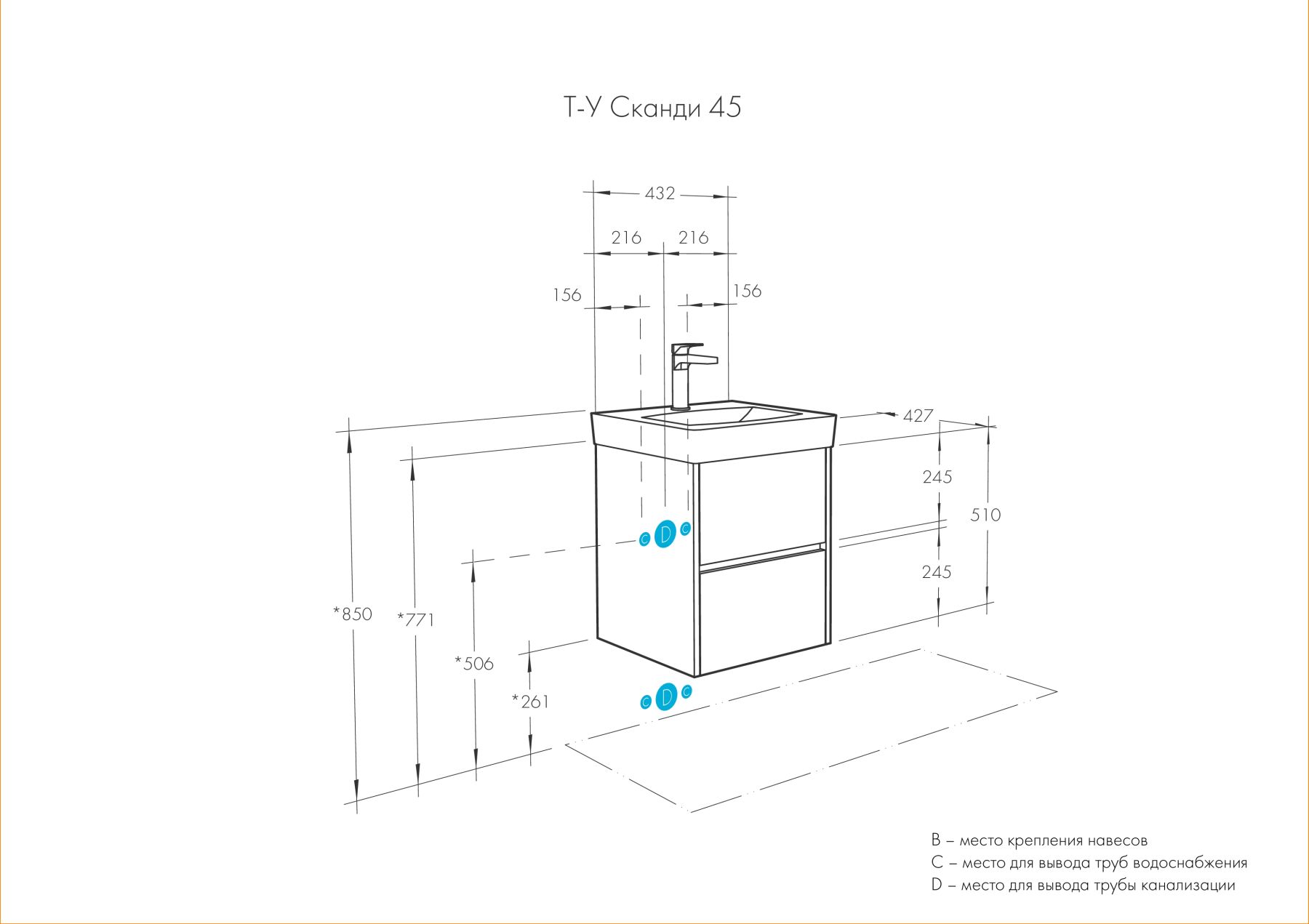 Тумба под раковину Акватон Сканди 45см белый/дуб верона 1A251601SDB20
