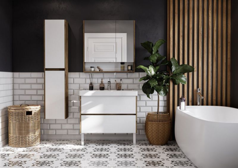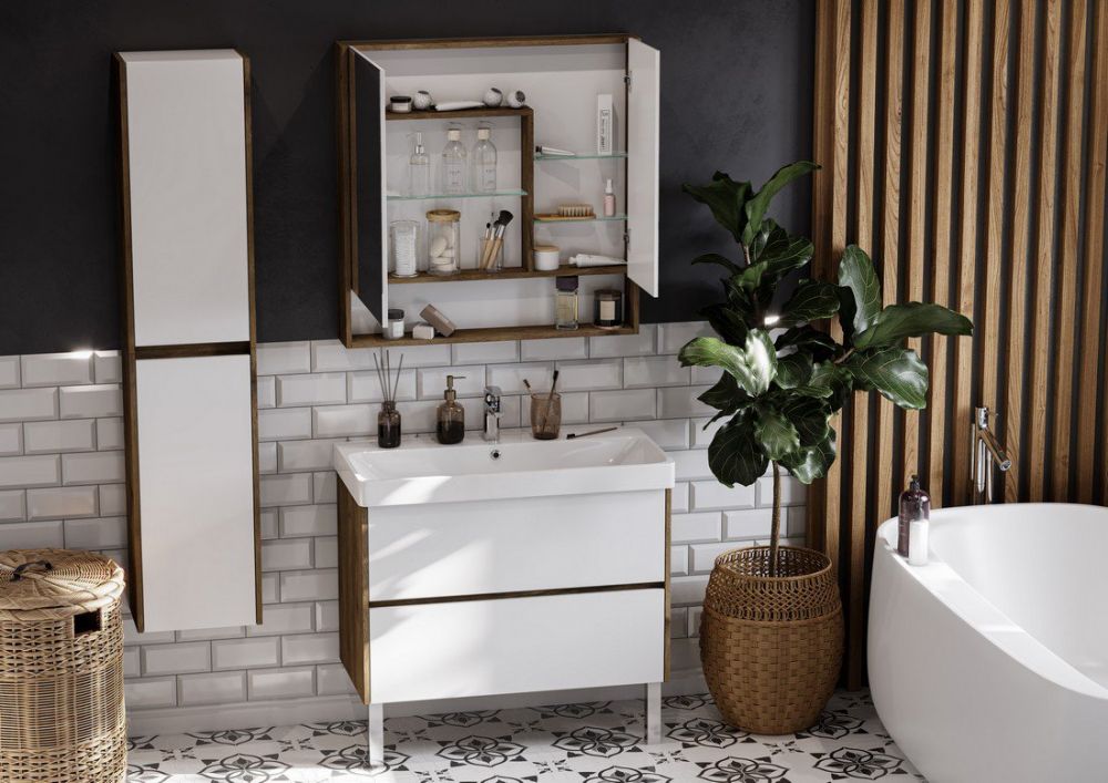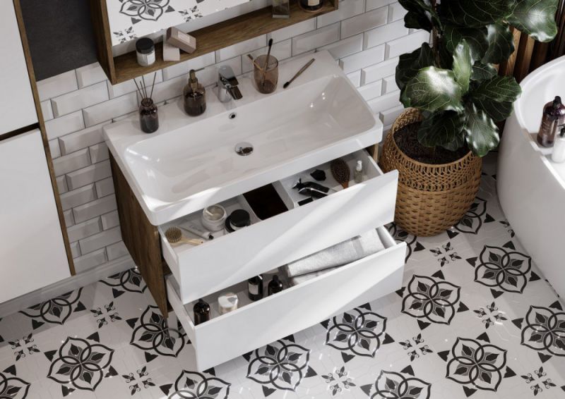 Тумба под раковину Акватон Сканди 90см белый/дуб рустикальный 1A251901SDZ90