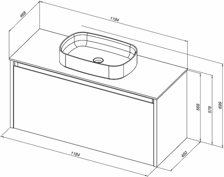 Габариты корпуса тумбы (ШхВхГ): 1184х568х460 мм.