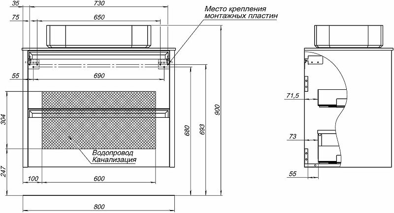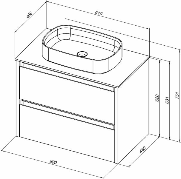 Габариты корпуса тумбы (ШхВхГ): 800х620х460 мм.