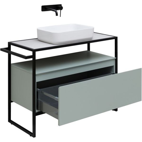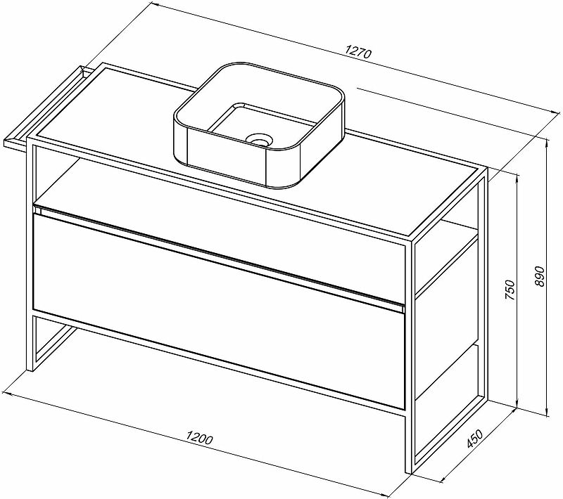 В комплекте поставки:Тумба под раковину (металлический каркас, выдвижной ящик).