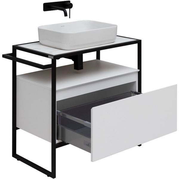 В комплекте поставки:Тумба под раковину (металлический каркас, выдвижной ящик).