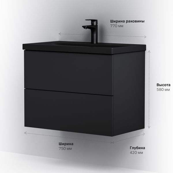 Тумба под раковину Am.Pm Gem 75см чёрный матовый M90FHX07522BM