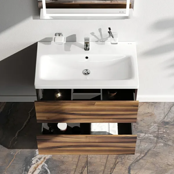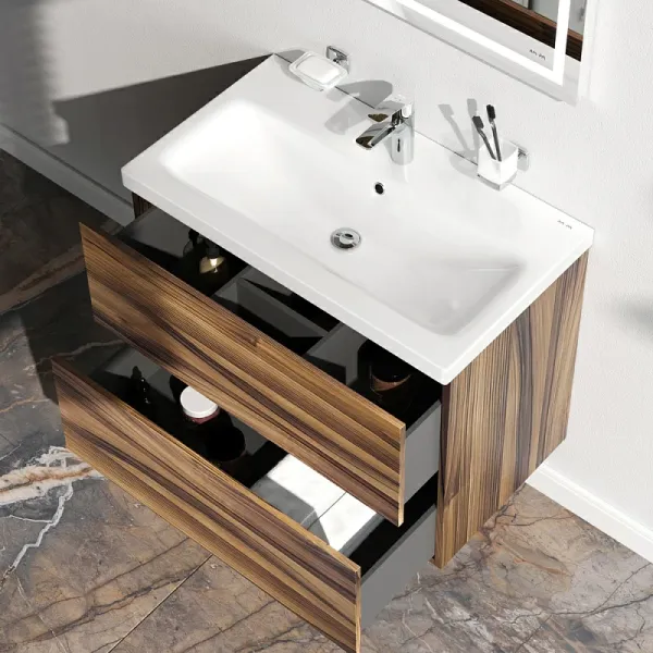 Тумба под раковину Am.Pm Gem M90FHX0752HF подвесная орех 75 смПодвесная тумба бренда AM.PM коллекции Gem идеально подойдет тем, кто предпочитает минимализм в интерьере. Современный европейский дизайн от студии DanelonMeroni (Великобритания/Италия). Фурнитура push-to-open - открытие ящика легким нажатием на фасад. Два ящика с антискользящим покрытием цвета "антрацит" – европейский стандарт. Размер (Ш/Г/В): 750x410x540 мм.