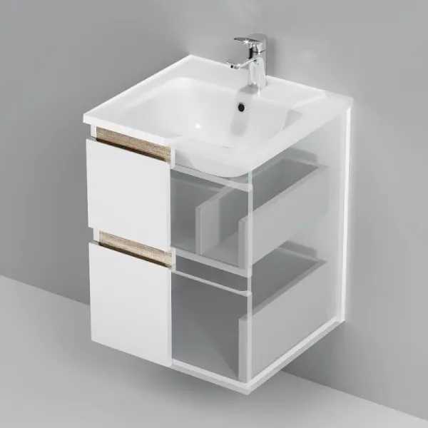 Подвесная тумба помогает сэкономить место в ванной комнате, визуально увеличивая пространство. Установка на удобной высоте. Оптимизация хранения вещей внутри ящиков. Грамотно расположенные скрытые коммуникации внутри тумбы. Бортик по контуру раковины препятствует проливу воды за мебель. Сантехнический фарфор - долговечный и прочный материал, обладающий высокой гигиеничностью.