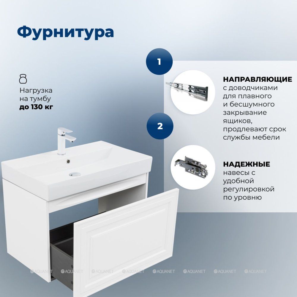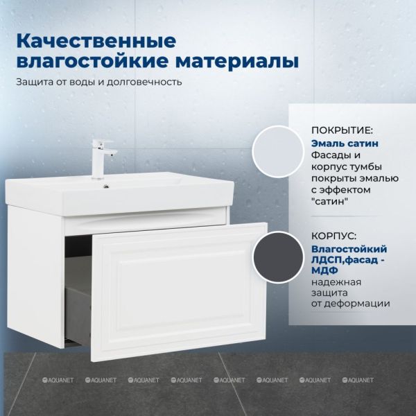 Тумба под раковину Aquanet Агата 75 белый сатин сочетает элегантность неоклассики с практичность... Подробнее