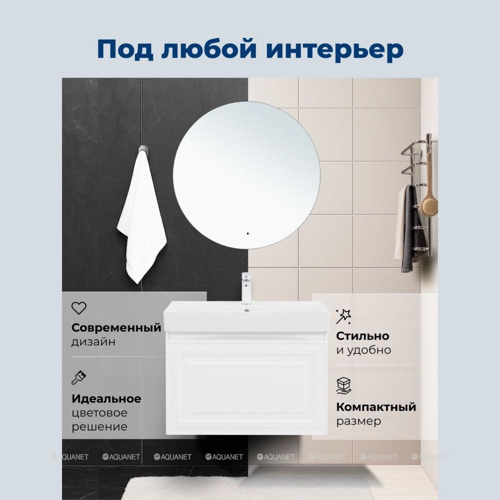 Тумба под раковину Aquanet Агата 75 белый сатин — это стильное и функциональное решение для ванной комнаты. Она сочетает в себе прочность, устойчивость к влаге и продуманную конструкцию.