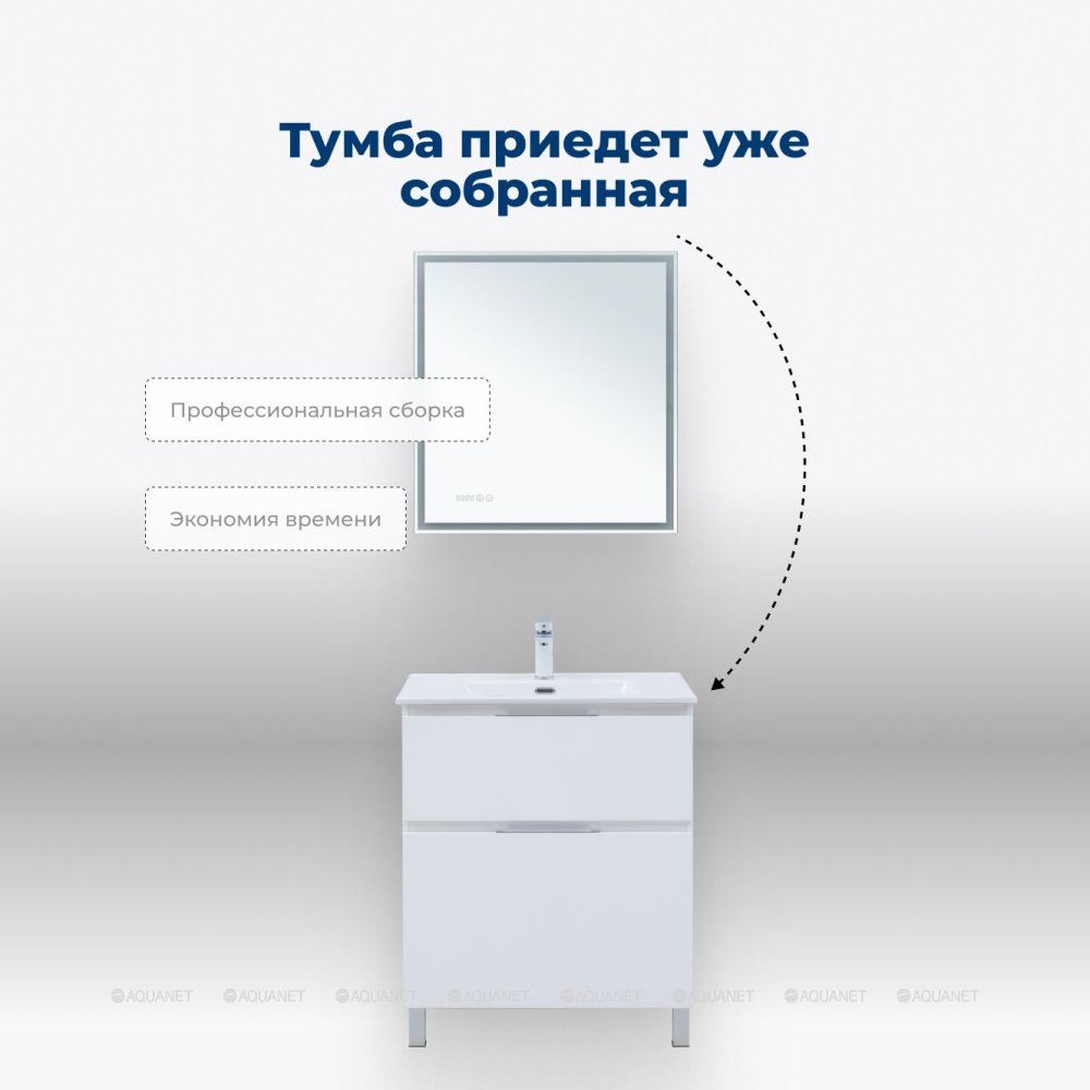 Тумба под раковину Aquanet Алвита New 70 напольная, белый матовый. Внутренние детали изготовлены... Подробнее