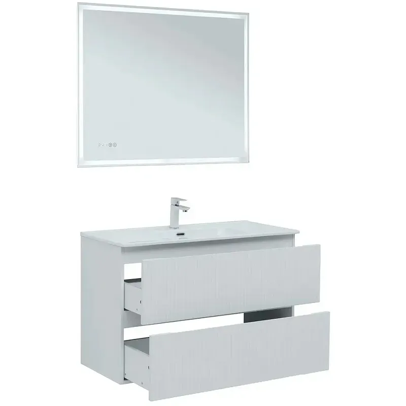 Тумба под раковину Aquanet Джейн (Flat) 100 белый матовый — практичное и стильное решение для ванной комнаты. Корпус и фасады изготовлены из МДФ, покрытого суперматовой пленкой ПВХ повышенной прочности с эффектом «Soft touch». Покрытие не только приятное на ощупь, но и надежно защищает мебель от влаги. Полимерная структура пленки не пропускает воду, поэтому тумба не деформируется со временем и сохраняет первоначальный вид.