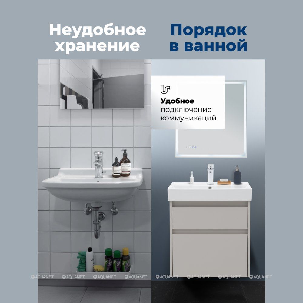 Компактная и стильная тумба под раковину Aquanet Nova Lite 2.0 60 в бежевом цвете с матовым по... Подробнее