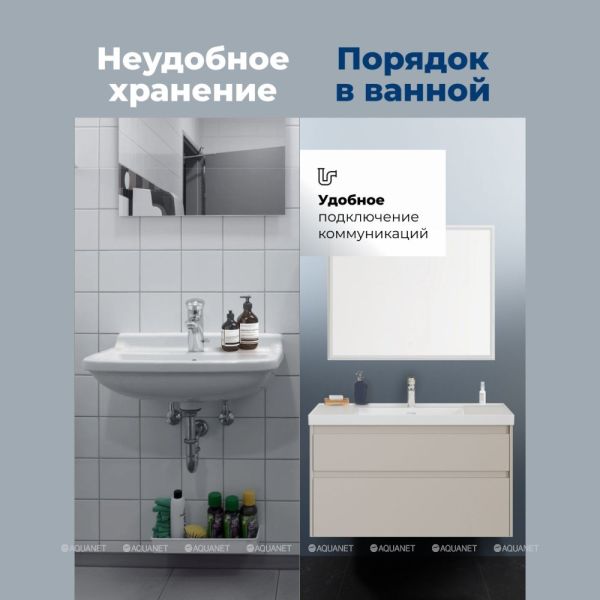 Тумба под раковину Aquanet Nova Lite 2.0 110 в бежевом цвете с матовым покрытием станет практи... Подробнее