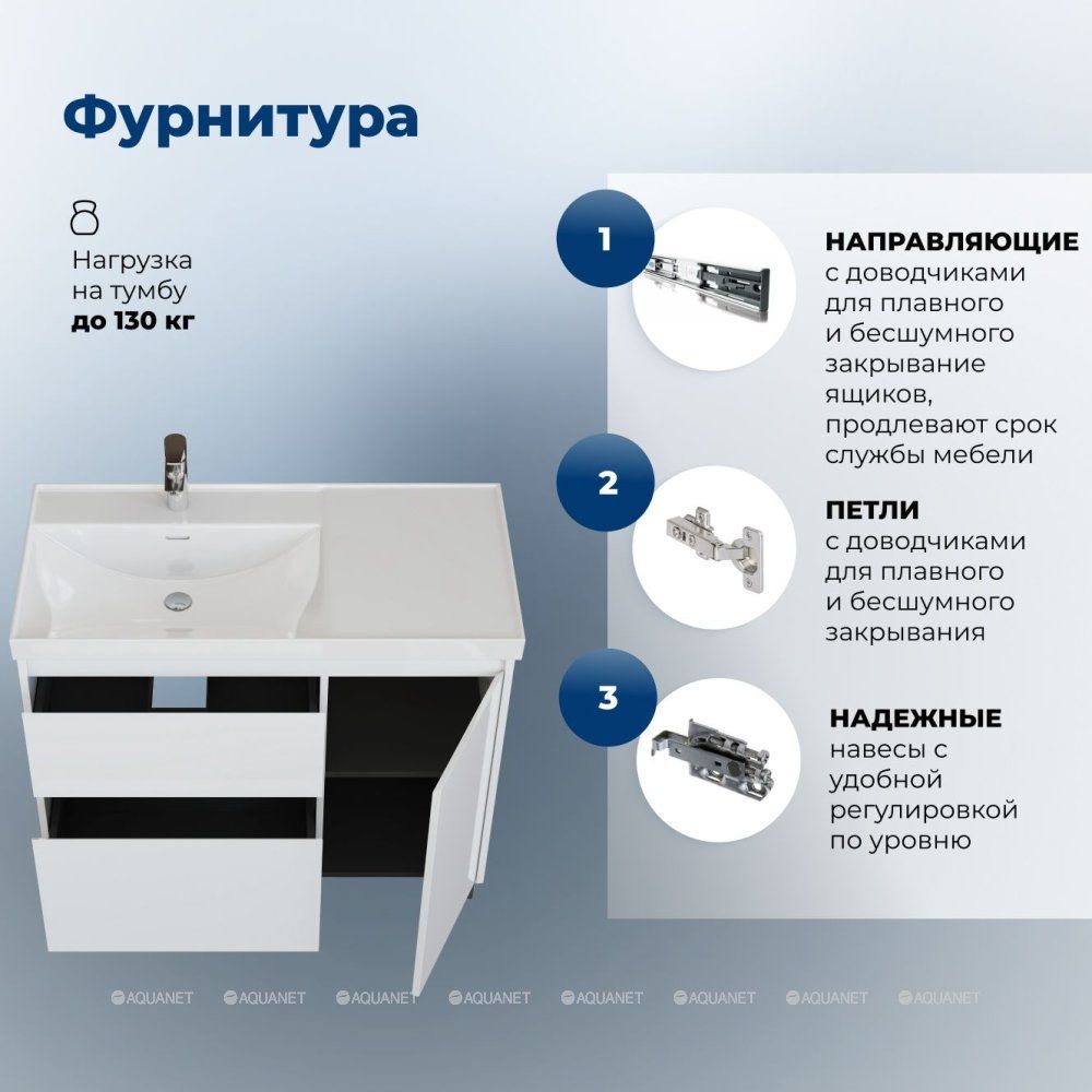 Тумба под раковину Aquanet Nova Lite 2.0 100 в белом цвете с глянцевым покрытием станет практи... Подробнее