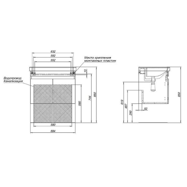 Корпус тумбы выполнен из влагостойкой ЛДСП с ламинированным покрытием, что гарантирует долговечность и устойчивость к воздействию влаги. Фасады также изготовлены из влагостойкой ЛДСП, обеспечивая единый стиль и надежную защиту от деформации.