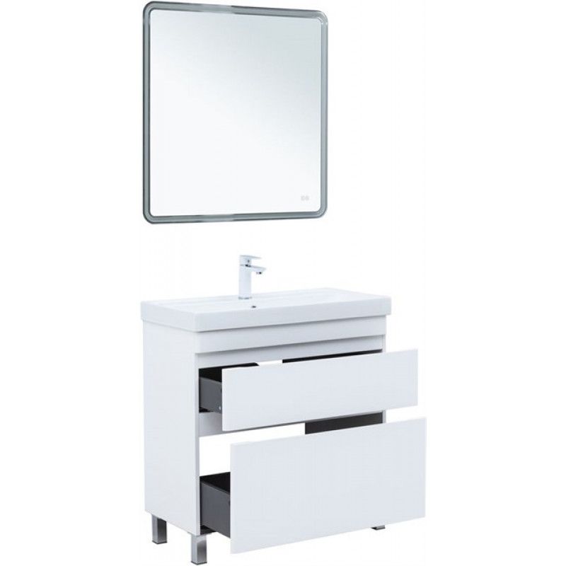 Тумба под раковину Aquanet  Слим 80 напольная, белый сатин – компактное и функциональное решение для ванной комнаты. Она сочетает лаконичный дизайн и продуманные детали. Глубина тумбы с раковиной составляет 405 мм, что делает её удобной даже для небольших помещений.