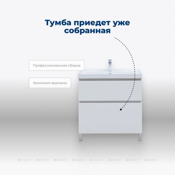 Тумба под раковину Aquanet Вега 60 напольная в отделке "белый глянец" – это воплощение эле... Подробнее