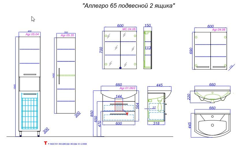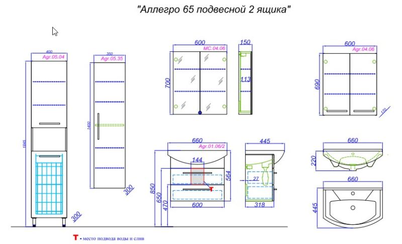 Тумба под раковину Aqwella Аллегро 65 Agr.01.06/2