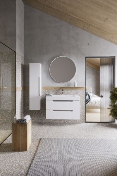 Подвесная тумба в белом матовом цвете с двумя ящиками под умывальник из литьевого мрамора.Коллекция мебели Cube – это строгие линии мебели для современных интерьеров, подчёркнутые искусным исполнением. Подвесные гарнитуры Cube поставляются в размерах 70 и 90 см. Доступные цвета мебели – белый и серый. Финальный слой лака – матовый.