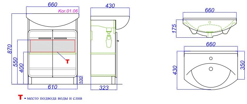 Тумба под раковину Aqwella Корсика 65 Kor.01.06